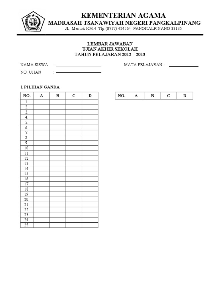 Lembar Jawaban Ujian Akhir Sekolah from imgv2-2-f.scribdassets.com We did not find results for: Check spelling or type a new query. Maybe you would like to learn more about one of these?